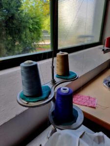 Wir bieten verschiedene Nähmaschinen, darunter auch Over Lock-Maschinen, die dir ein professionelles Nähergebnis ermöglichen. Große Tische stehen bereit, perfekt zum Zuschneiden, Abstecken und Vorbereiten deiner Stoffe.